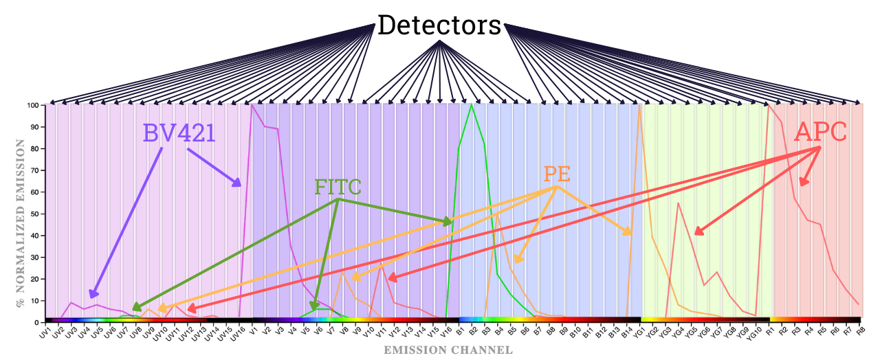 Conventional Flow Cytometry partitions the spectrum